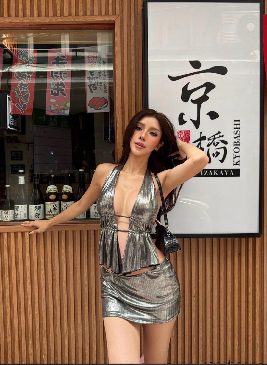 CHROME là hiện thân của ánh đèn đêm – của sự nổi bật và không thể bị bỏ qua. Set được thiết kế với áo cổ khoét ngực sâu, kết hợp cùng chân váy mini ôm sát, tôn triệt để đường cong cơ thể và tạo hiệu ứng thị giác mạnh mẽ.