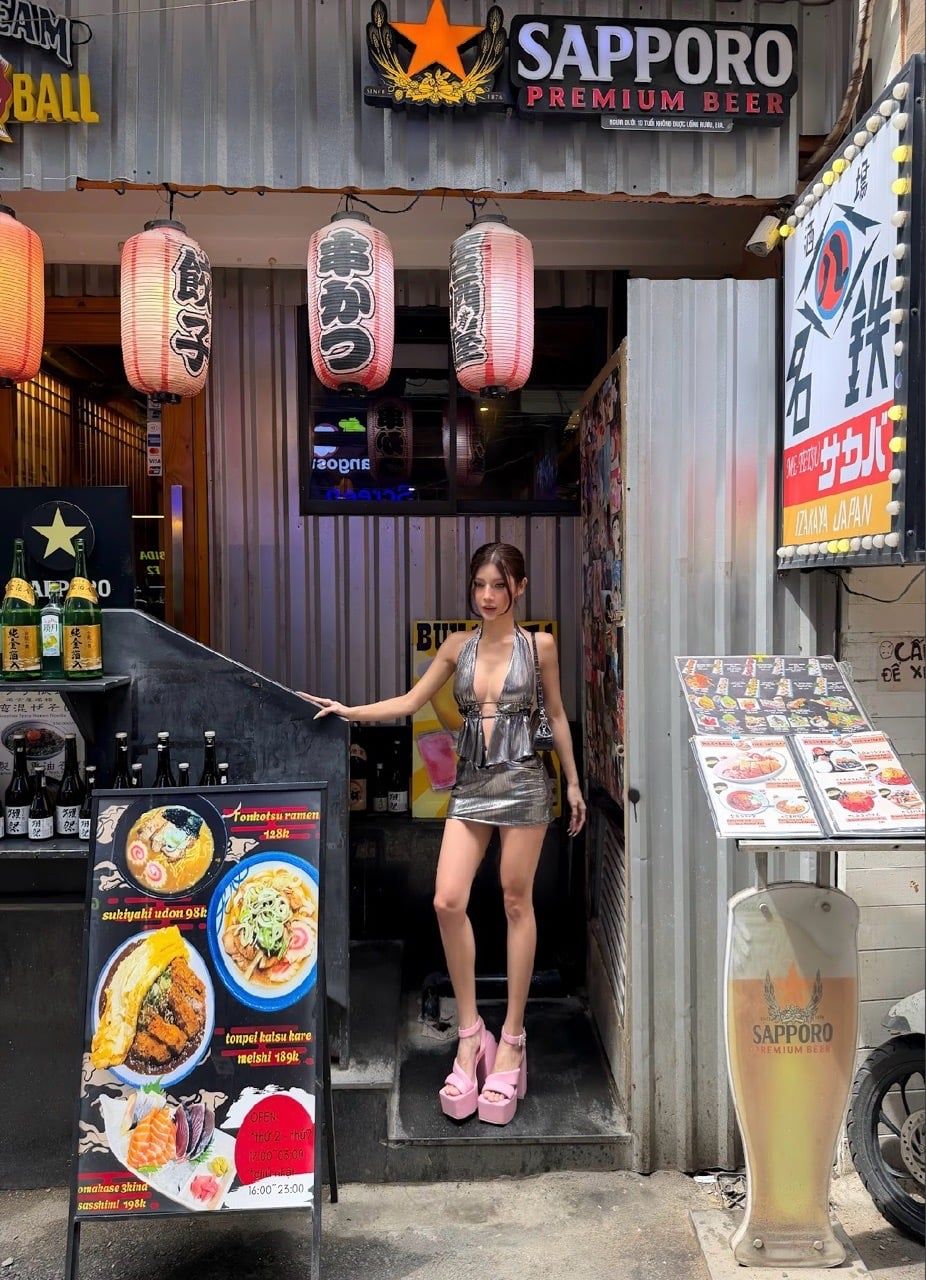 Chất liệu ánh kim metallic bắt sáng cực tốt – lấp lánh dưới mọi ánh nhìn, từ ánh đèn sân khấu đến flash máy ảnh. Thiết kế hở lưng táo bạo, phối dây mảnh hai bên eo, mang đến tổng thể sexy – hiện đại – nổi loạn nhưng vẫn đầy tính thời trang.